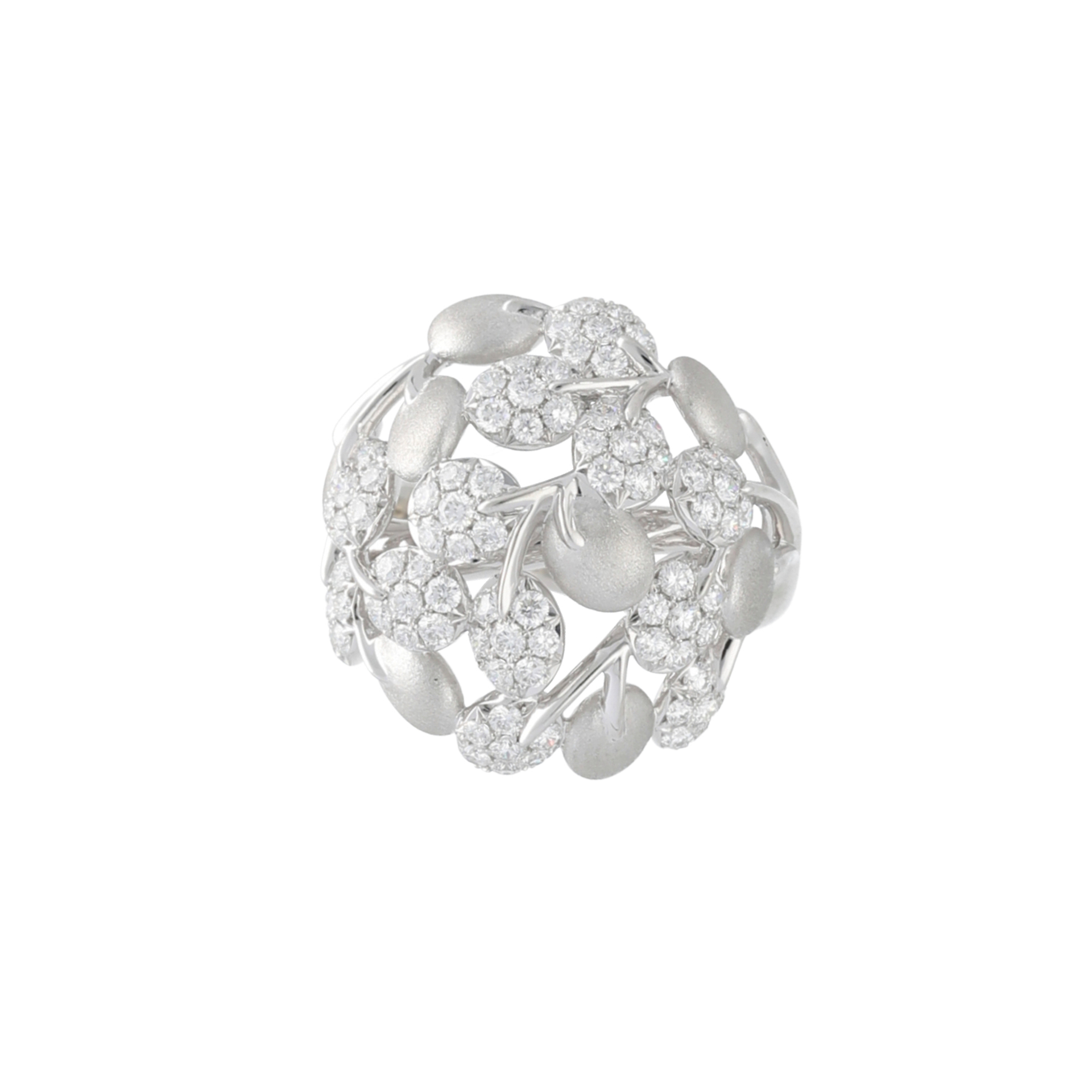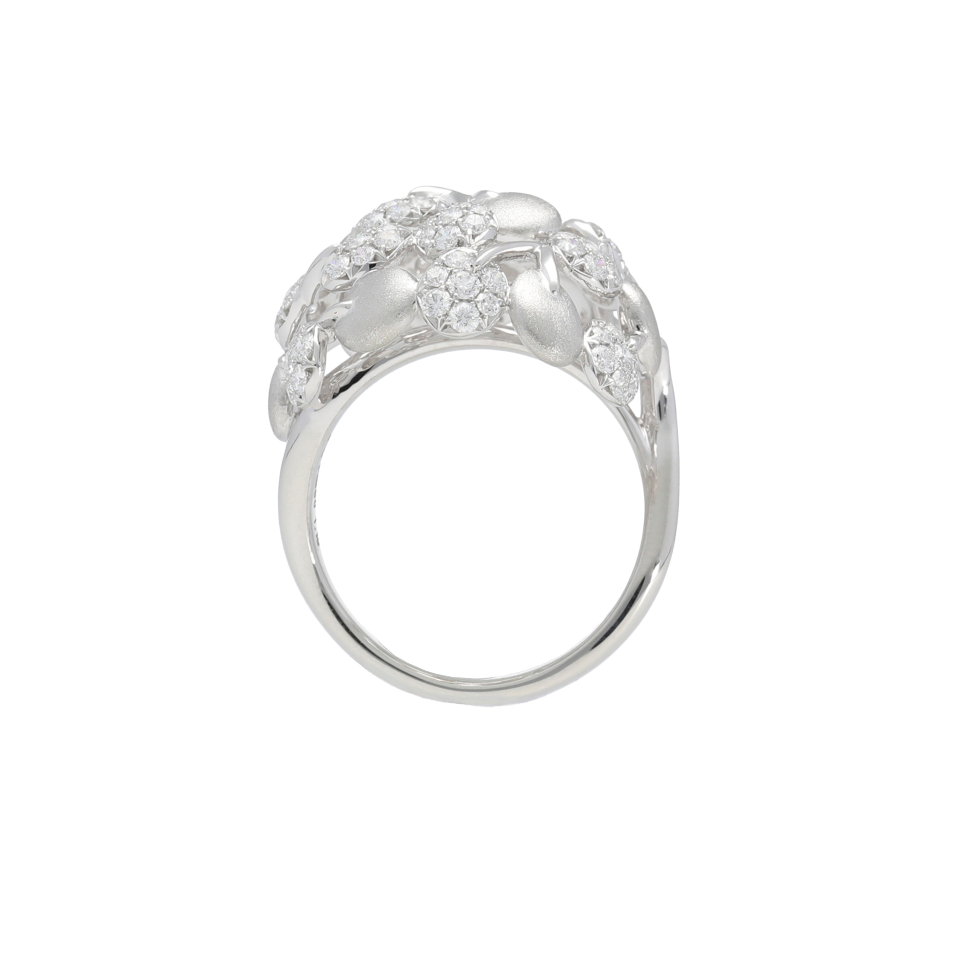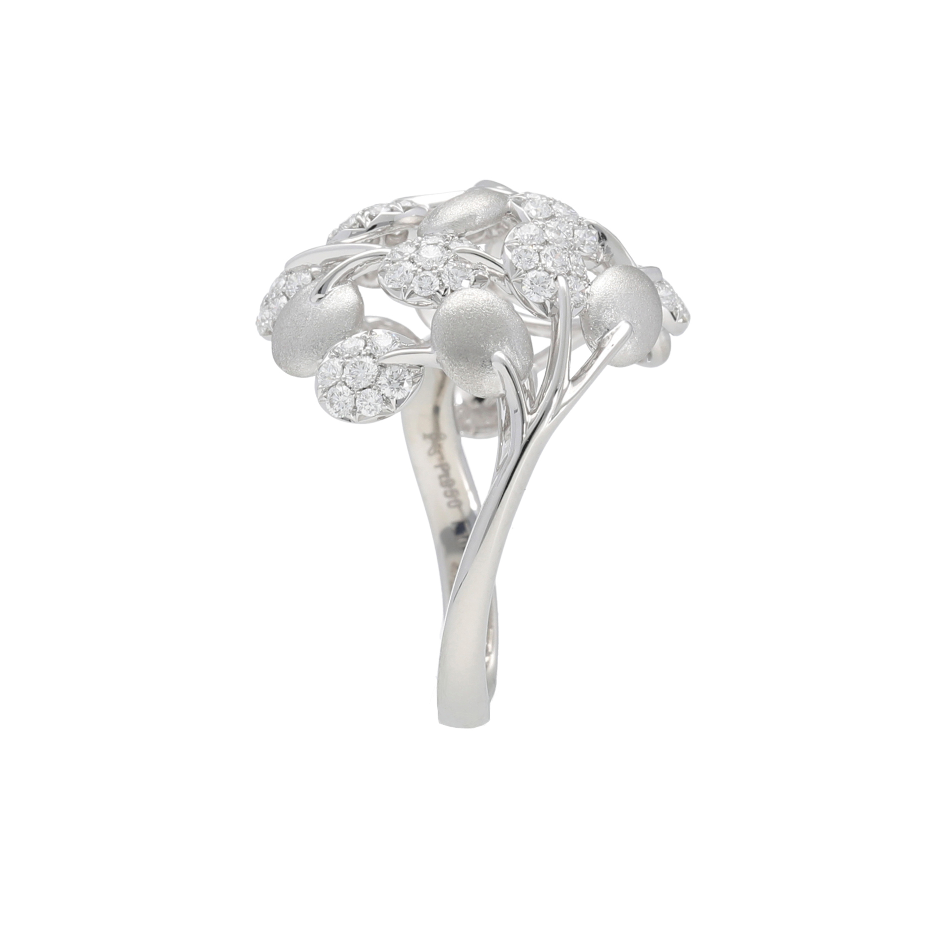全方向に輝くダイヤモンドと丸みを帯びたフォルム、アームはあえて華奢に絞り込み、重さを感じさせません。透かしの葉が影を作る立体感が、ハイジュエリーならではの高級感を生みます。厳選された素材のさらに上澄みだけをすくったOKURADO品質のダイヤモンドが、曙光を受けて輝く生命力あふれる萩の葉を顕現させます。