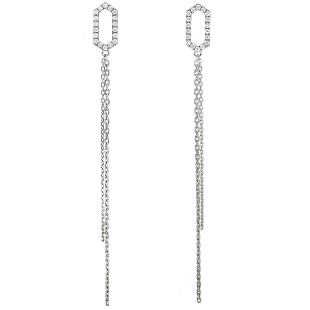 繊細に揺れるチェーンが、耳元に上品な華やかさを添えます。