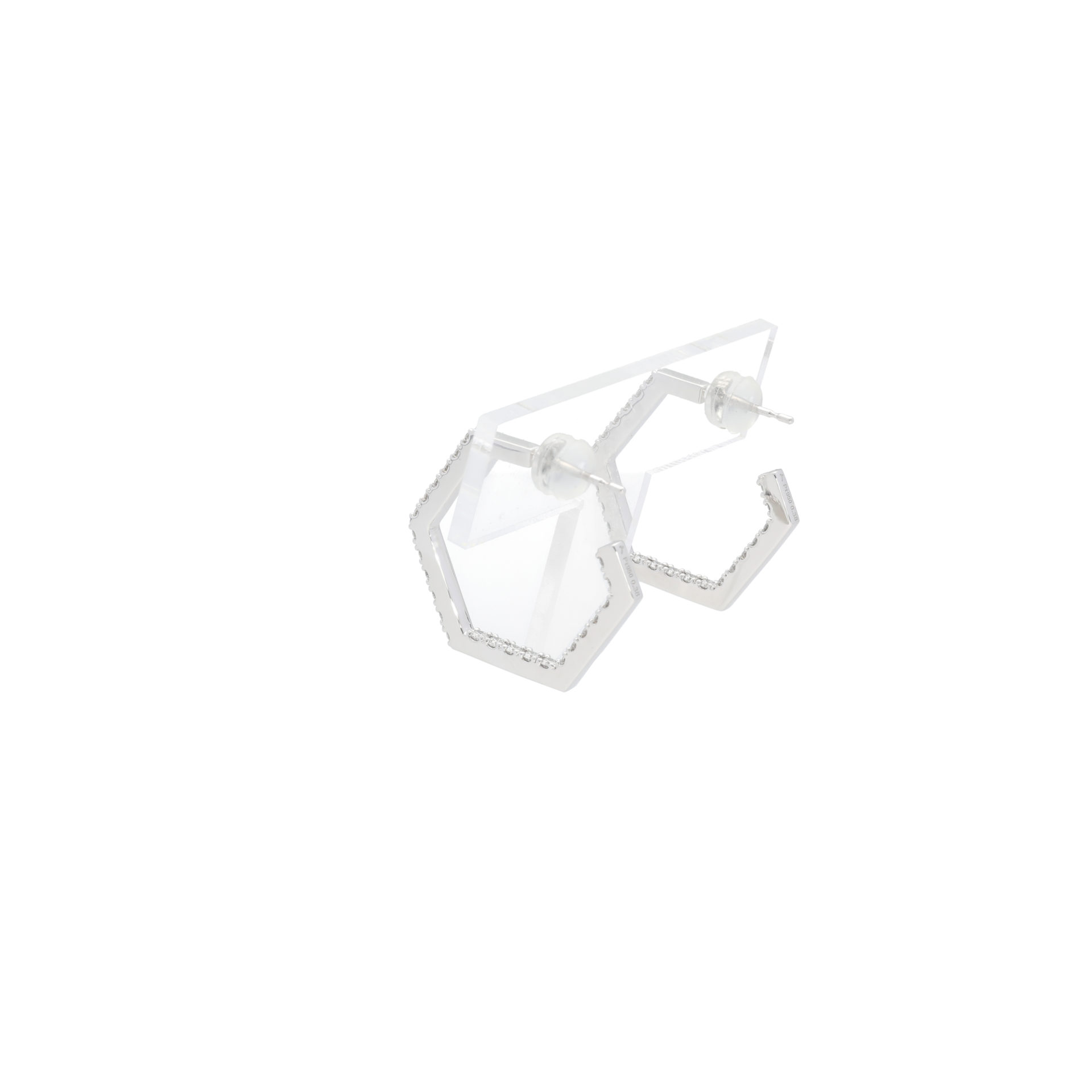 その名の通り、六角形のシルエットのフープイヤリング。正面だけでなく内側にもダイヤモンドがセットされており、輝きにも奥行きを持たせています。