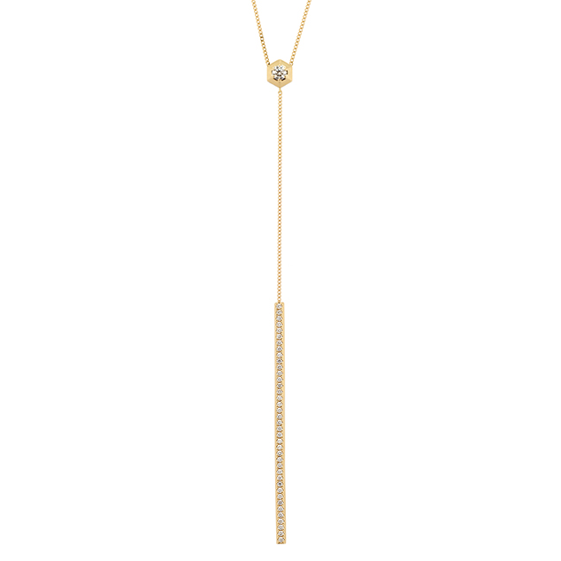 その名の通り、六角形のシルエット。極細のラインが美しい、70cmセミロングのネックレス。OKURADOコレクションの中でも、最も直線的なデザインで、シンプルながらも、ダイヤモンドを輝かせる様々な工夫が凝らしてあります。