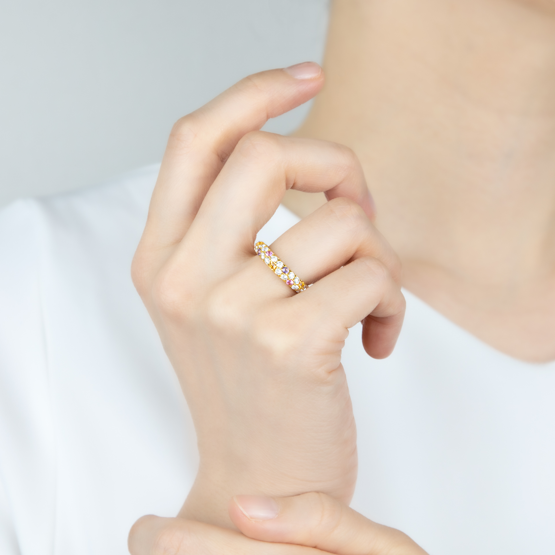 ダイヤモンドカットで揃えたカラーストーンと、すべてのファセット向きを整えたセッティング、指で触れても滑らかな仕上がりで、ストレスを感じさせません。誕生石ではなく、日本の四季の彩りで一年を表現したOKURADOこだわりのコレクションです。
