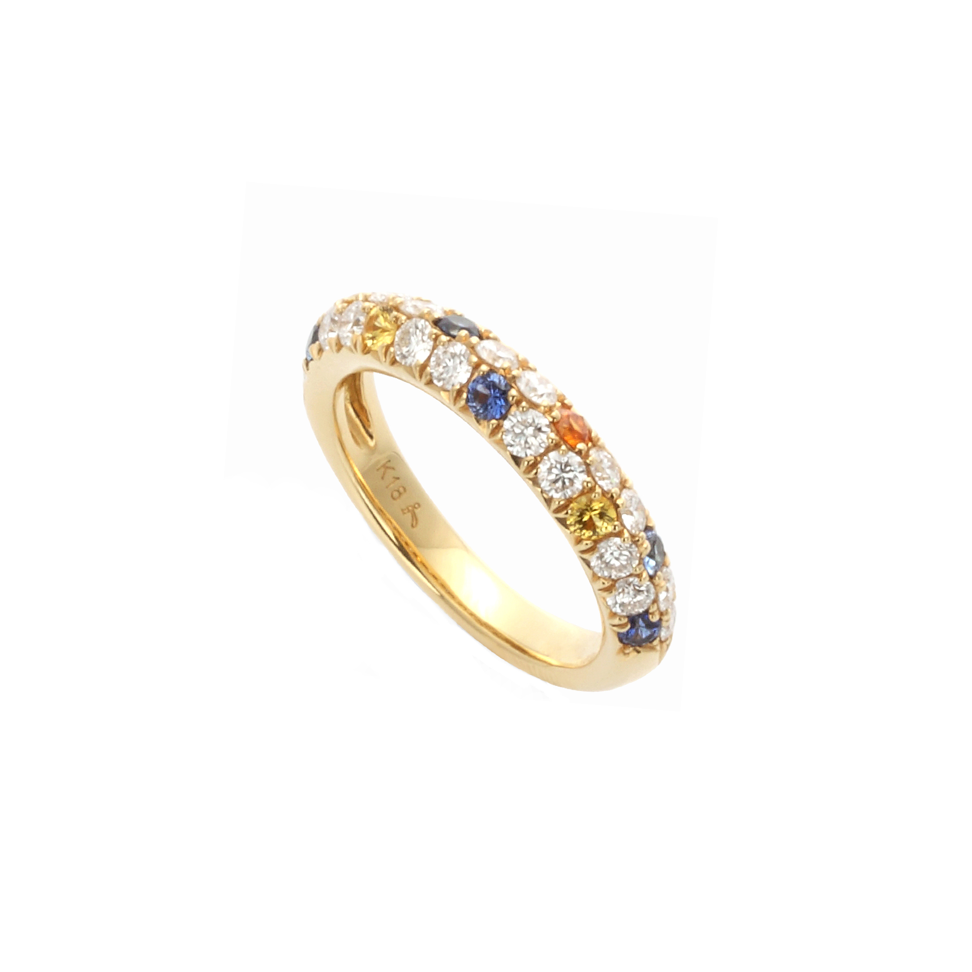 Materials:K18イエローゴールド、ダイヤモンド約0.63ct、サファイア、ガーネット