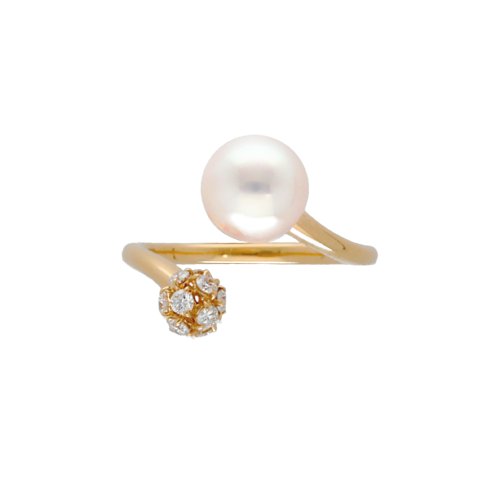 OKURADOが厳選したダイヤモンドと、ほんのり桜色のアコヤ真珠の調和が美しいリング。顔が映るほどテリの良い8mm台のアコヤ真珠をセレクトしています。