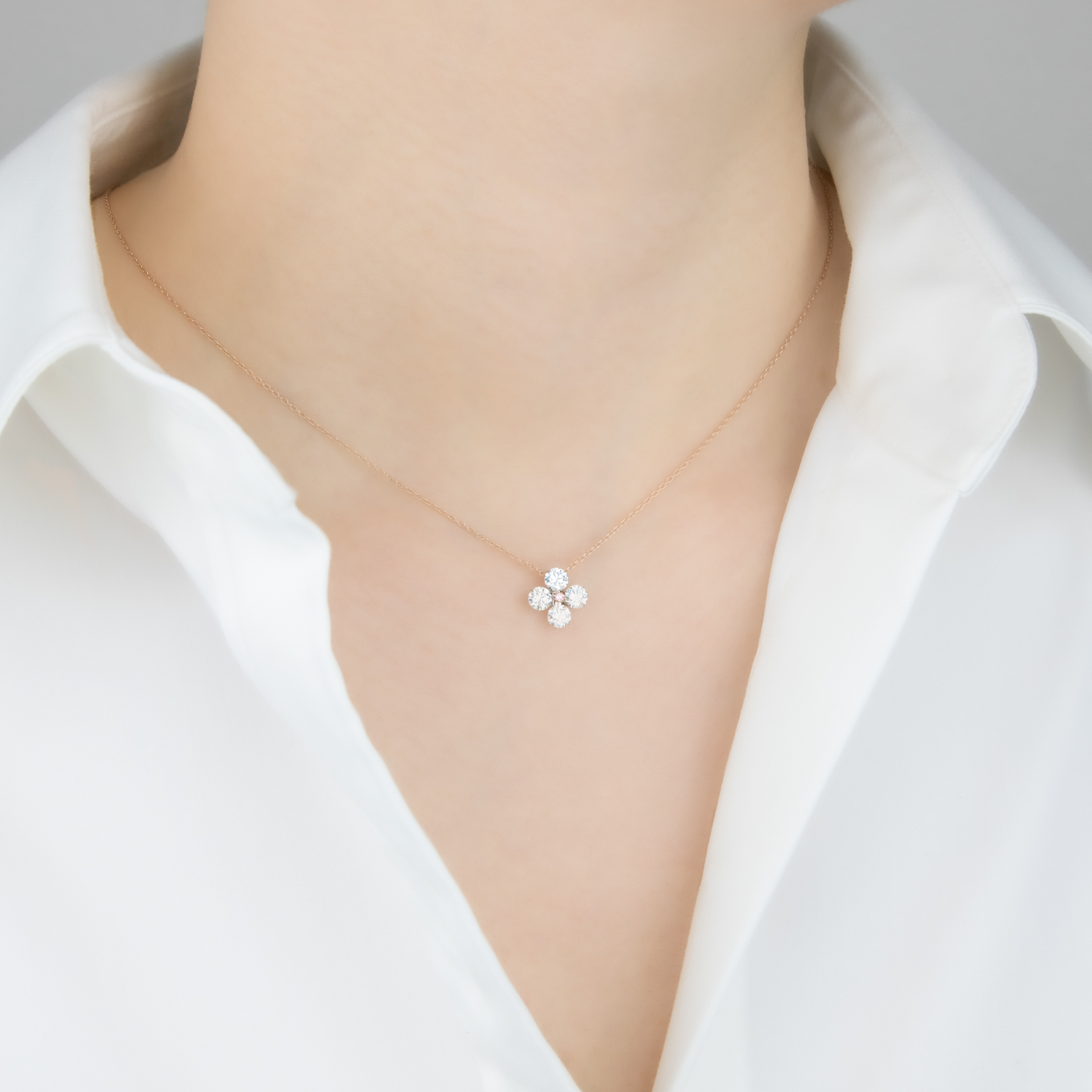 まるでダイヤモンドが宙に浮いているかのように見えるネックレス。